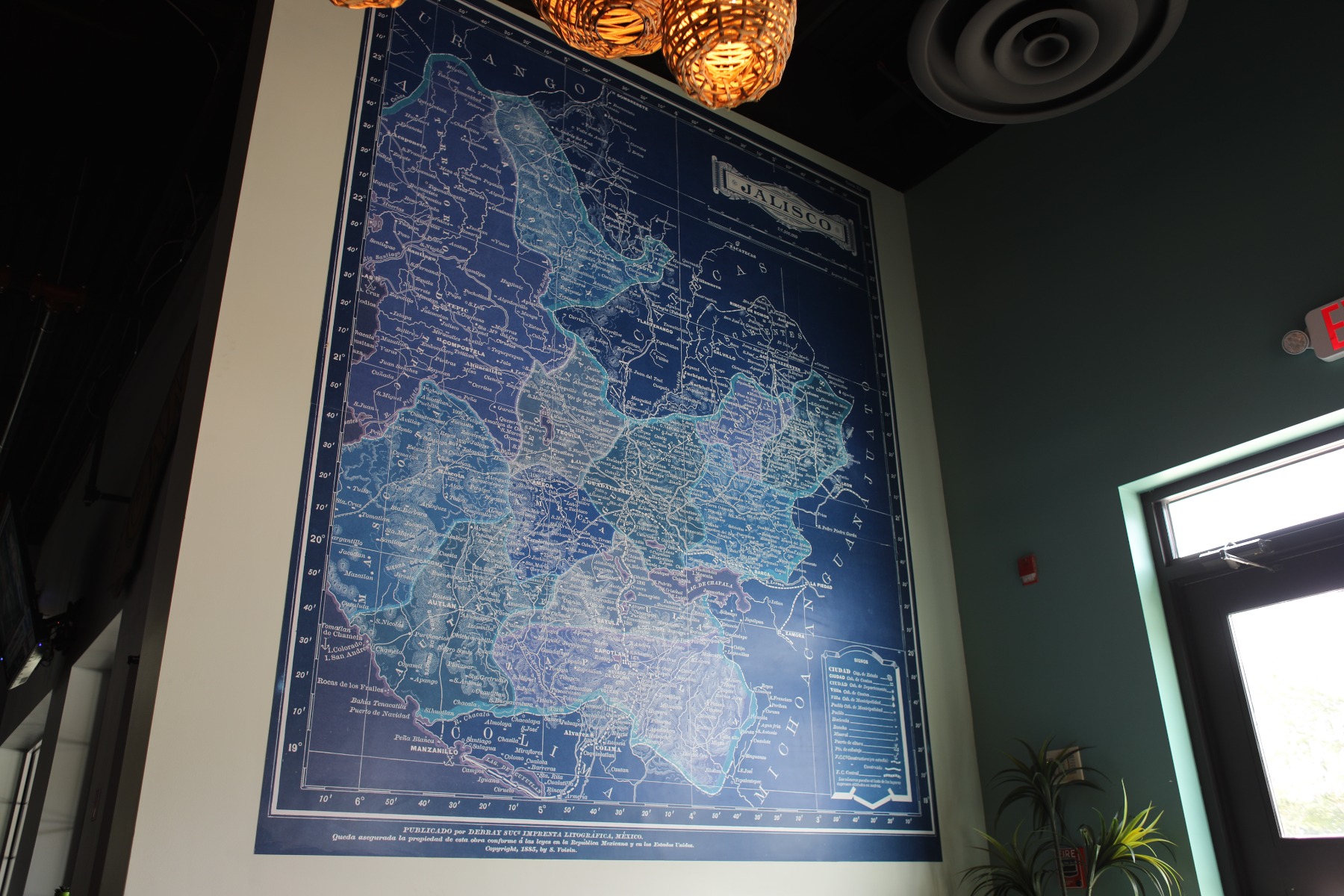 Additionally, our team was able to create a mural for the front walkway of the restaurant. The mural is a HIPS substrate of a map of Jalisco, Mexico, focusing on the town where Pepe and his family come from. This giant map is not only a beautiful piece of art for the newest Rio Grande restaurant, but it is also scratch, stain and puncture resistant. The mural can be cleaned with some of the harshest cleaning solutions without losing its beauty. For such a high-traffic area, it is the perfect accent piece.